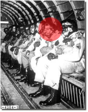 Test Platoon (sixteen of us) sat on the first row of seats in the sweat-shed with parachutes on awaiting the C-47 to take us for
